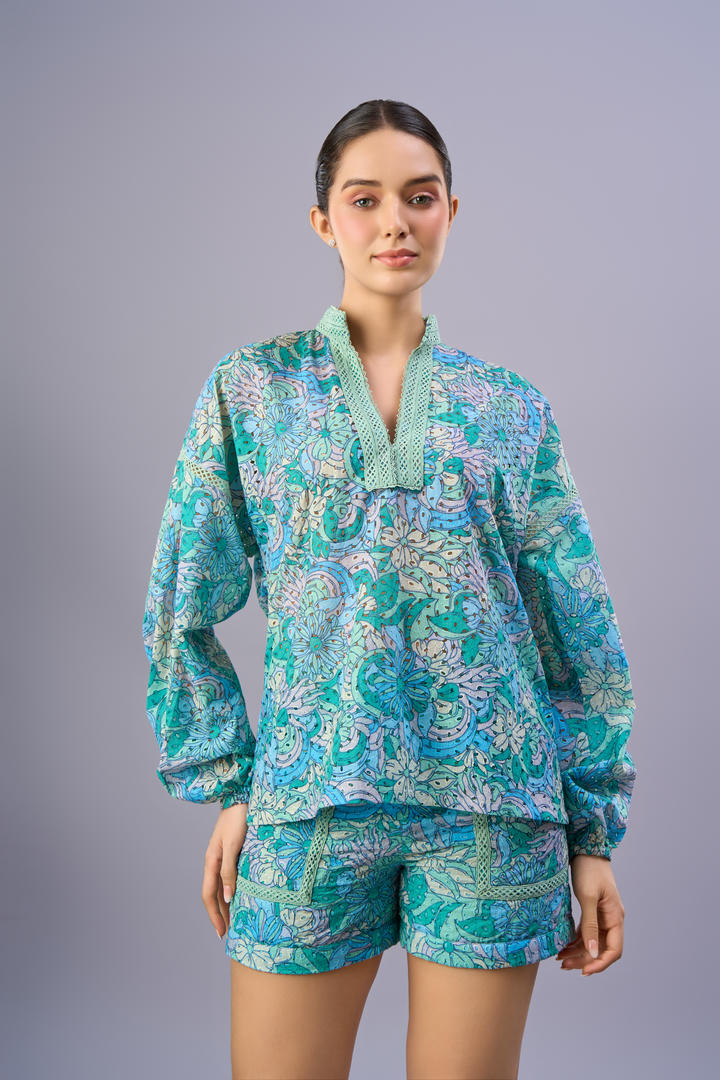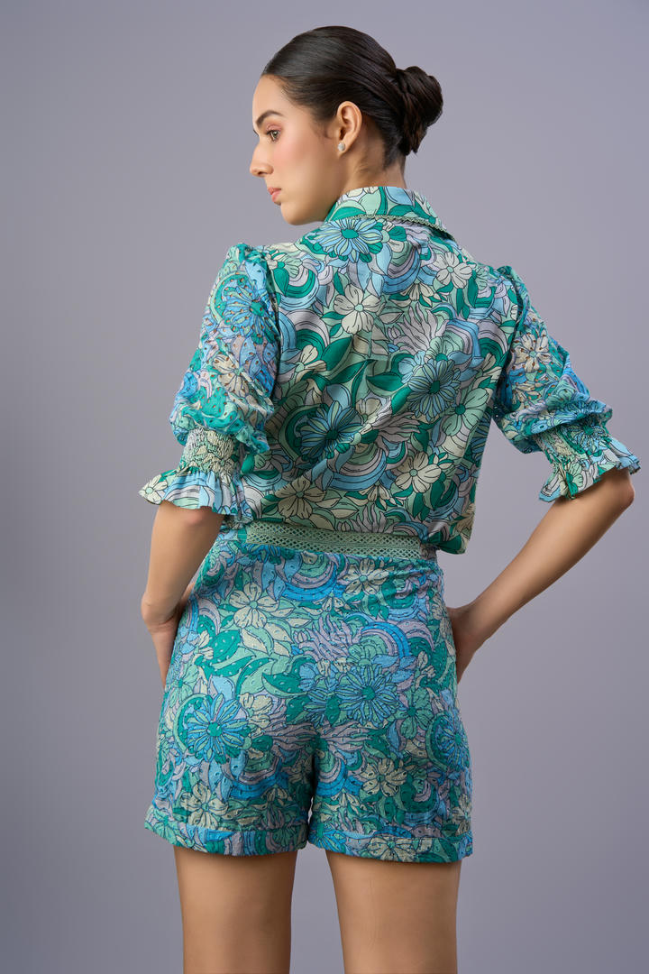 The Livy Shorts are crafted from airy schiffli cotton with a floral print, lace-trimmed pockets, and a tailored waistband for structure. Style them with the Sofie Kurti Top for an effortless day set or mix and match with light layers all summer long.