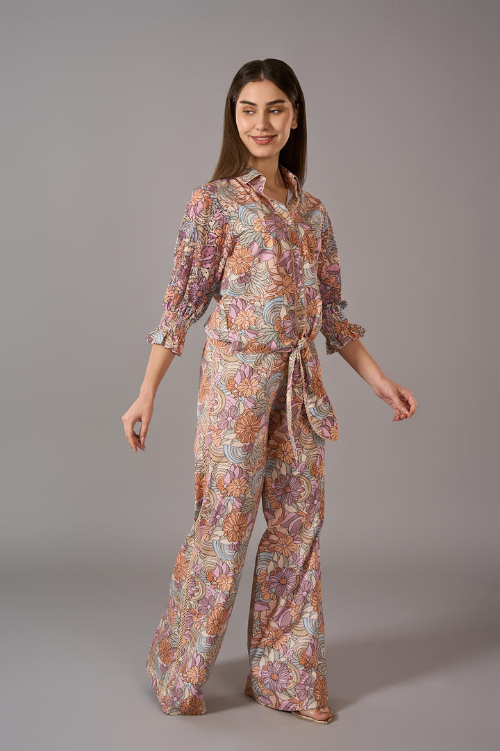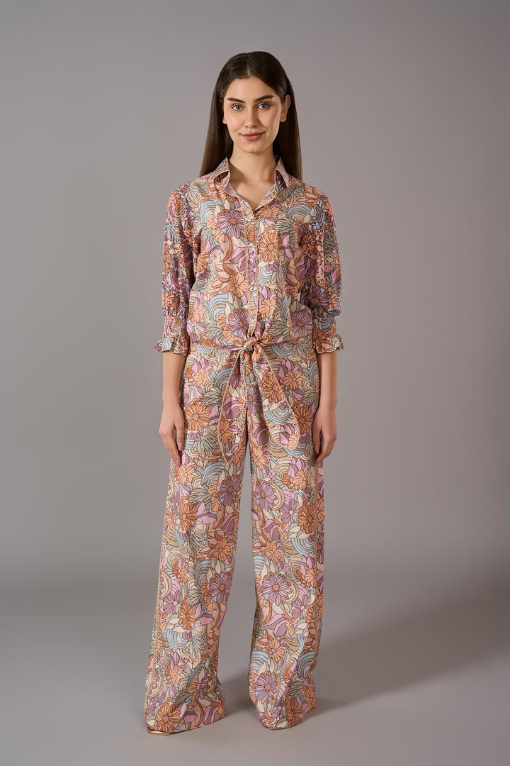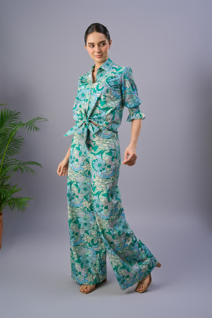 The Dot Trousers are high-waisted poplin pants with a wide-leg silhouette and all-over floral print. Tailored yet breezy, they pair effortlessly with the Winnie Shirt or a simple tank for elevated ease.