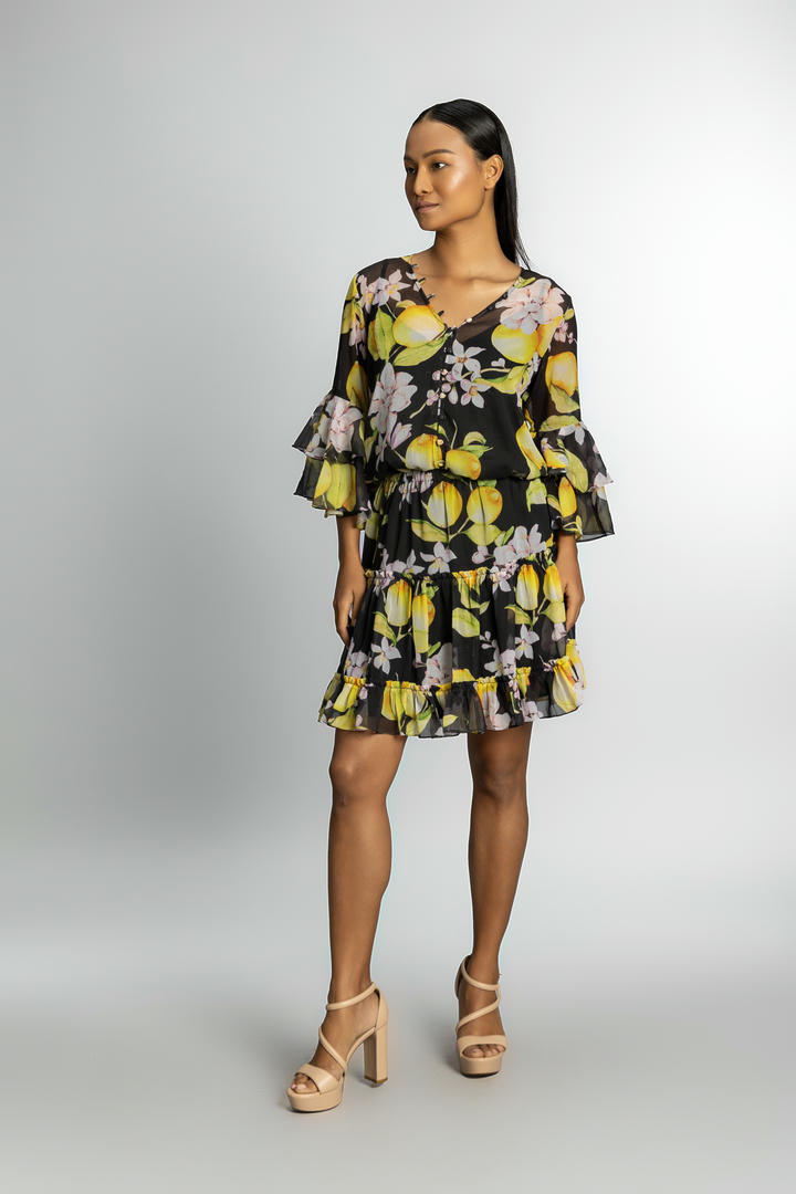 The Joy Mini Skirt features a tiered silhouette with a full elastic waistband for a comfortable, flattering fit. Available in peach and black, it’s a warm-weather staple that works seamlessly from off-duty hours to more polished moments.