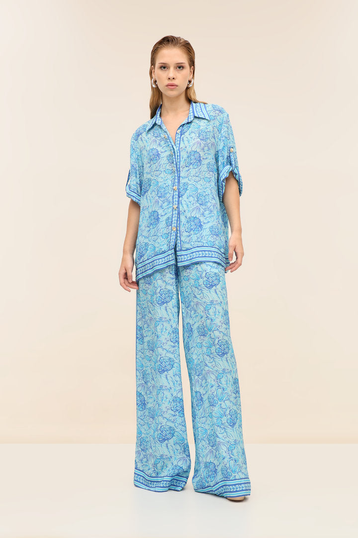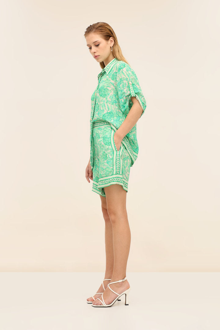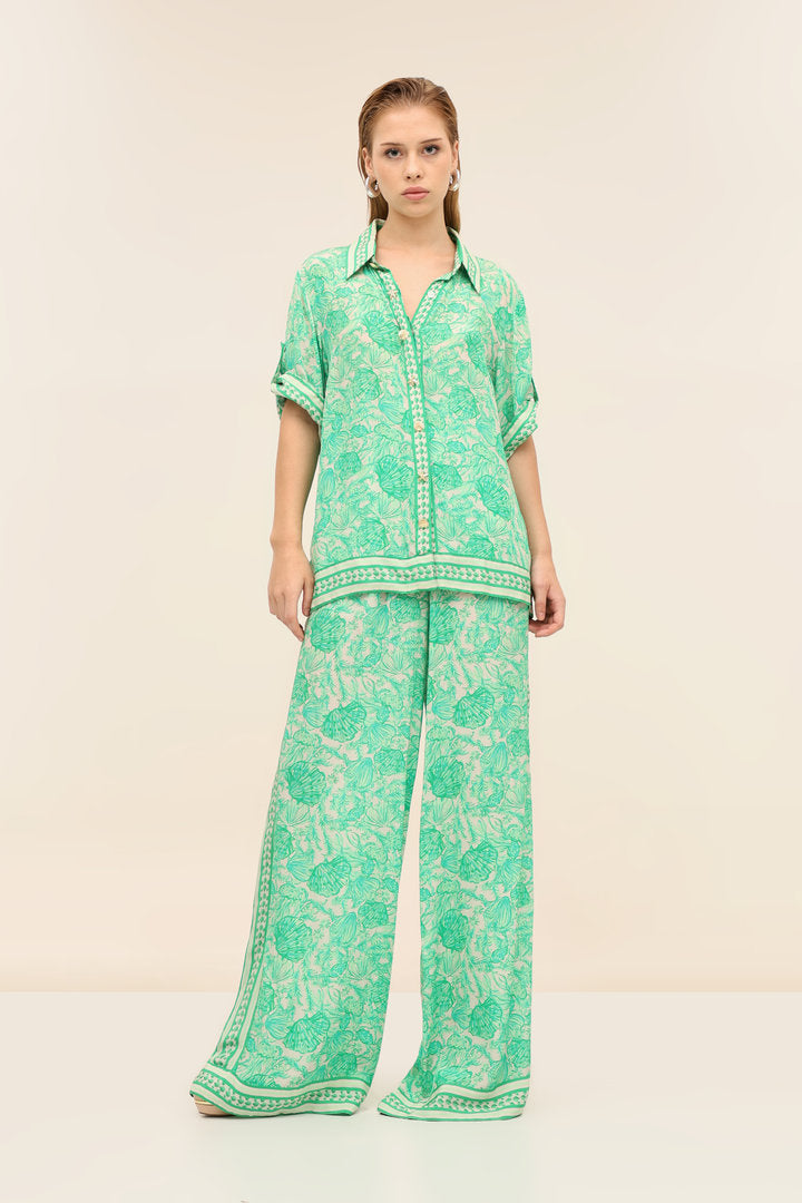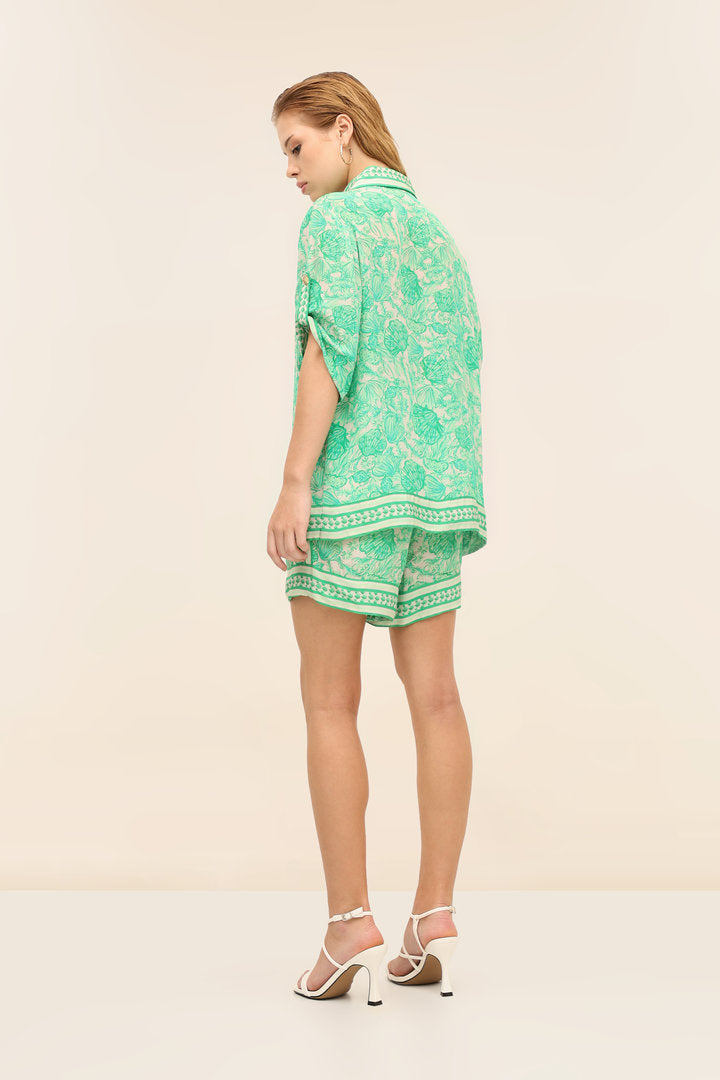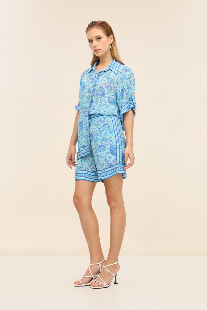The Sola Shirt is our relaxed button-down with an easy drape and border-detailed hem. Style it with the Mistral Pants for an effortless set or wear it open over swim for poolside polish.