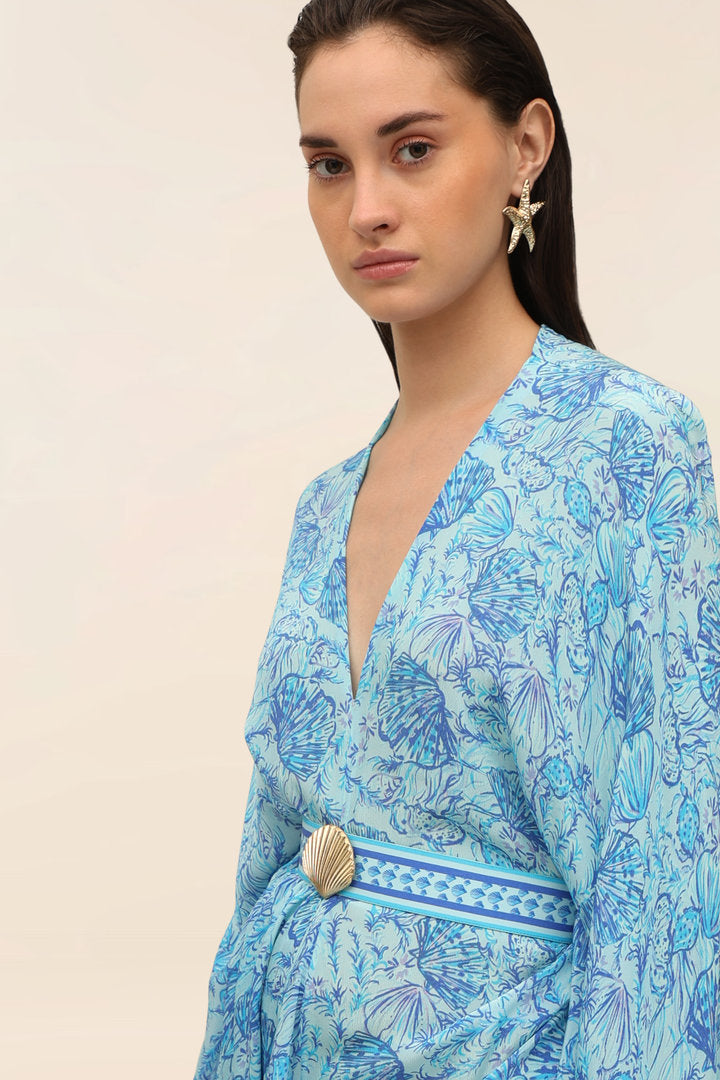 The Zeph Kaftan Dress features fluid, extended sleeves and soft pleats through the front for effortless movement. Style it loose or cinch it at the waist for added drama.